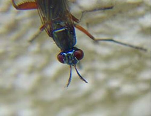 晴れ時々くもり/ハエなんですと。ヒゲナガヤチバエかも。朝、カラーの葉にプチメタリックなきれいな虫がとまっていた。1.5センチぐらい。ハチかと思ったけどアブみたい。どこかに行ってしまったと思っていたら壁にとまって足をこまねいていた。グリーンのよ…