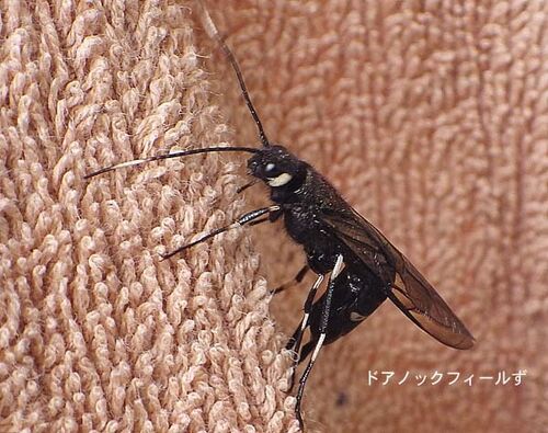 くもりのち晴れ/キバチの仲間がいたので追いかけていたら洗濯物を渡り歩いていました。 動きが速くてなかなか顔が写せませんでした。